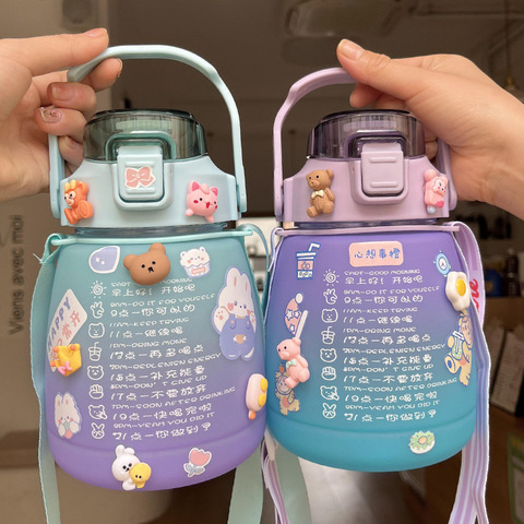 Telefon tutucu açık göbek su şişesi Tumbler su şişesi ile öğrenci için plastik çocuk su şişesi